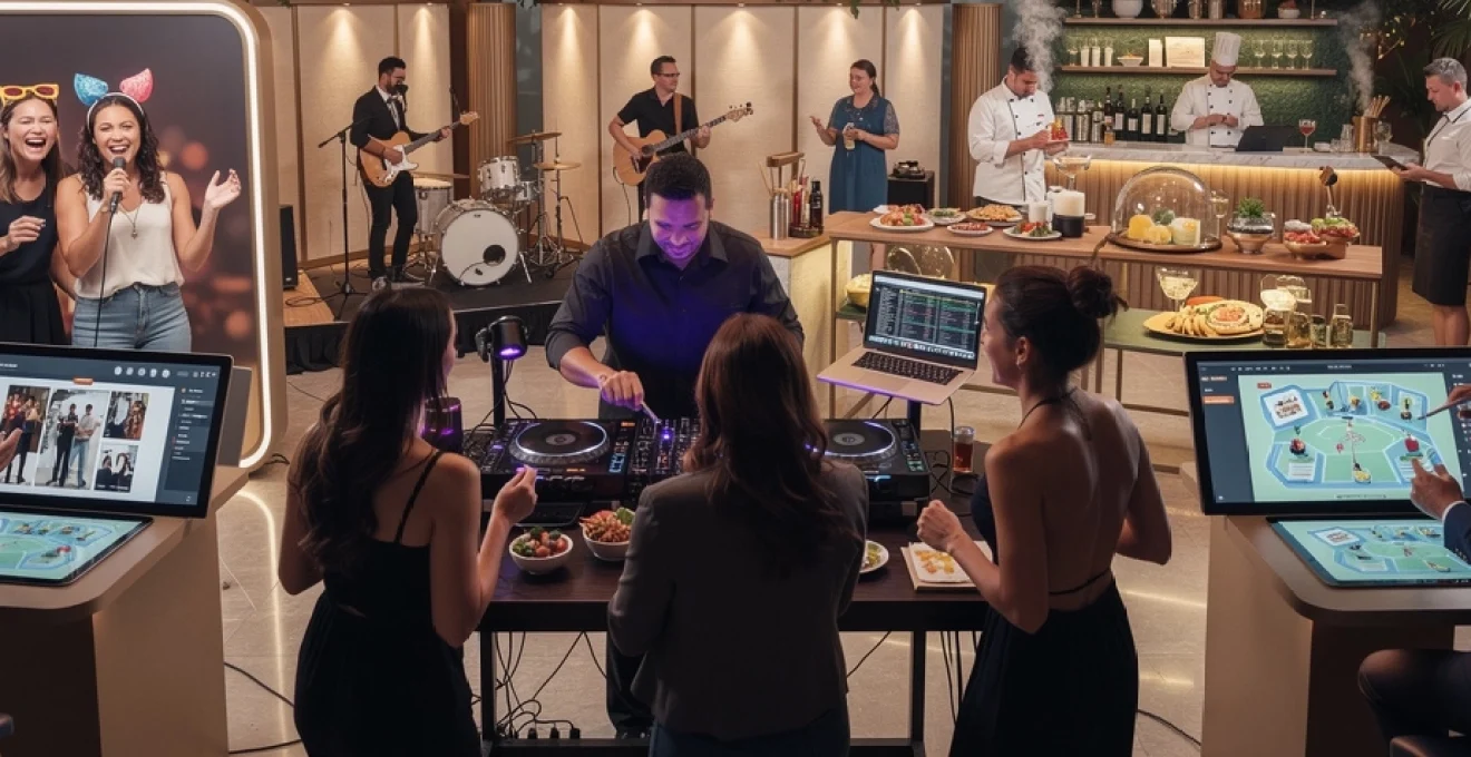 To keep immersive theming from feeling overwhelming or forced, focus on a few anchor points where the concept is expressed most strongly. These might be the bar, the photo area, and the dance floor, or perhaps the head table, dessert station, and lounge corner. Within these zones, you can introduce interactive elements such as themed props, projection mapping, or ambient soundscapes that extend beyond the main playlist. By guiding guests on a subtle journey through distinct yet cohesive areas, you create continuous discovery and natural entertainment without needing constant scheduled performances.