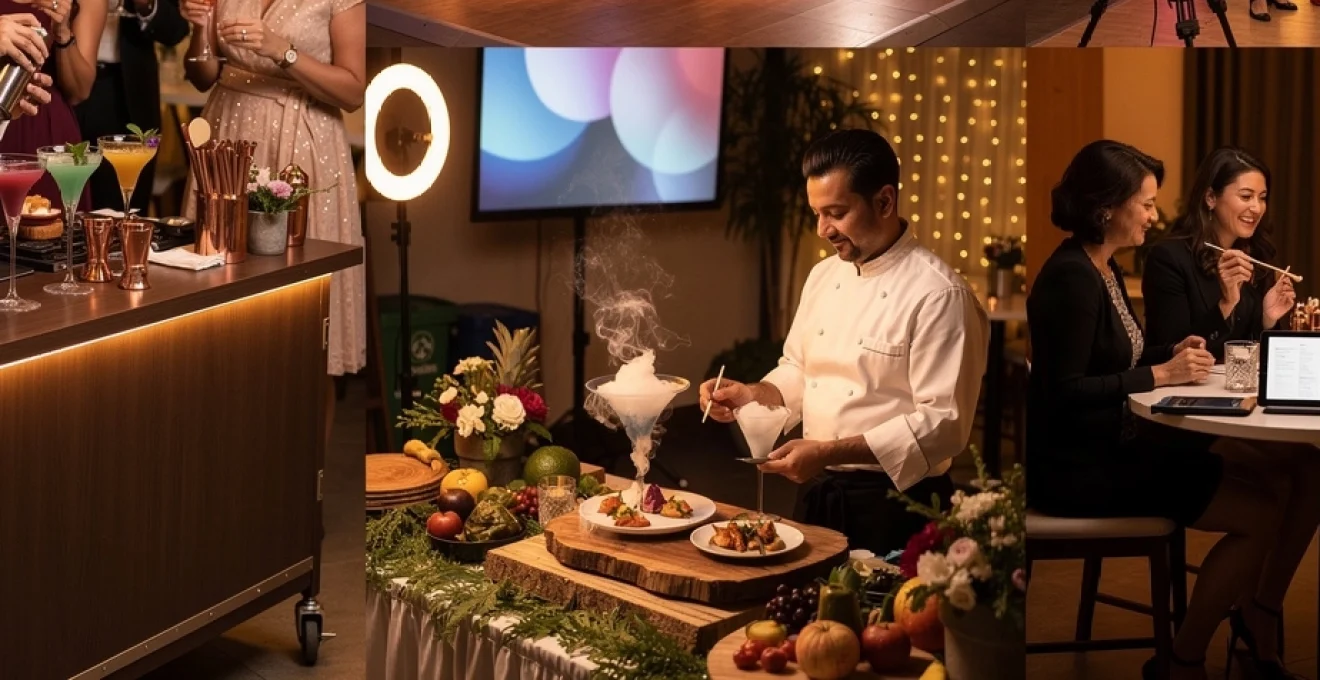 Interactive food stations encourage guests to move, mingle and customise their plates, turning the dining portion of the evening into an engaging activity. Examples include build‑your‑own taco bars, dim sum carts, fresh pasta stations, oyster shucking stands, or dessert bars with live crêpe or churro preparation. Chefs working in open stations provide a sense of theatre, answering questions and adjusting dishes to guest preferences in real time.