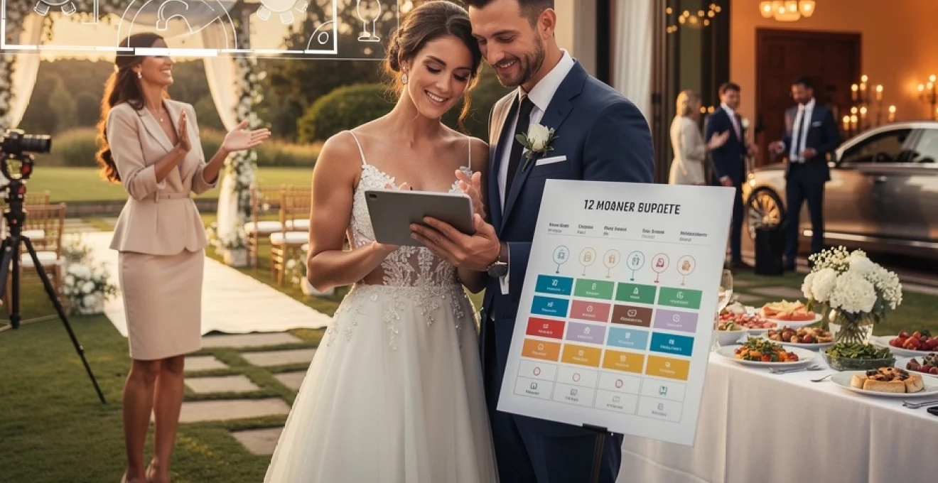 Twelve-month wedding planning timeline with critical milestone checkpoints